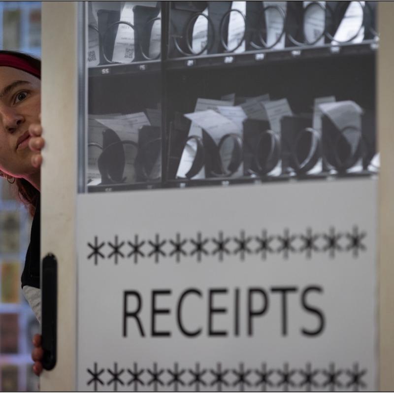 Der „BILLAUTOMAT“ steht den Besucher:innen der Q21 Schauräume auch außerhalb der Bürozeiten zur Verfügung: „Man wirft Geld ein und was man bekommt sind … Rechnungen“. Mit weiteren Interventionen ist zu rechnen. (BILLAUTOMAT ist eine Kooperation von Anna Vasof mit Robert Bettinger, Danny Nedkova, und Fabio Spink)